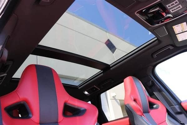 A full-size panoramic sunroof allows natural light to flood the cabin, creating a bright and airy atmosphere inside the SVR.