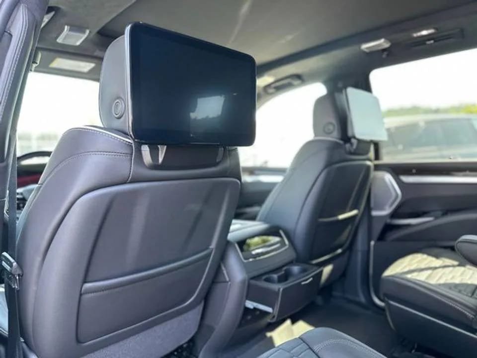 Cadillac ensures passengers in the second row are just as pampered. The rear seat entertainment system features dual 12.6-inch HD touchscreens mounted behind the front headrests. Passengers can stream content, mirror devices, play games, or browse independently — keeping every ride fun and interactive.